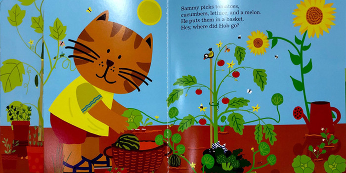 A book with half pages that hide and reveal how sammy and his little horse Hob discover summer.