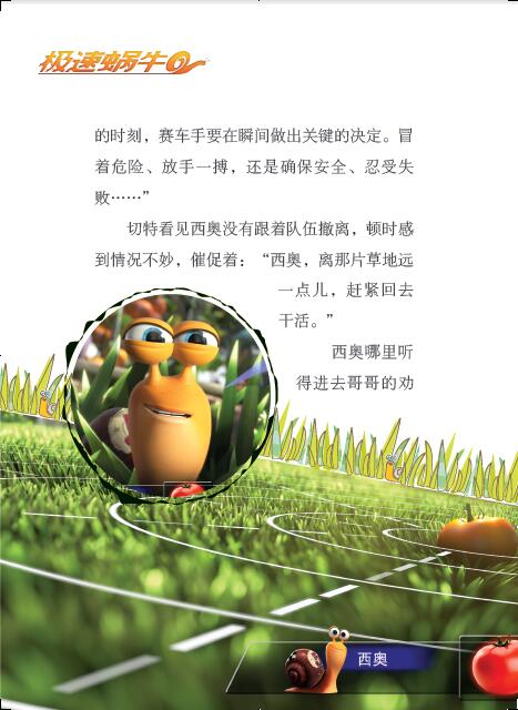根据梦工厂电影《极速蜗牛》改编的同名小说。故事讲述了本来慢吞吞的蜗牛和“速度”是八竿子打不着的关系,但小小的菜园蜗牛西奥却拥有一个让人匪夷所思的梦想——他想成为一名赛车手!伙伴们都不理解他,为了追求梦想,他把自己和哥哥弄得无家可归,甚至身陷险境。命运总是照顾一直坚守的人,西奥在机缘巧合下拥有了超能力,变成一只极速蜗牛。而发生变化的西奥能否实现梦想,奔跑在他向往的赛场上呢?