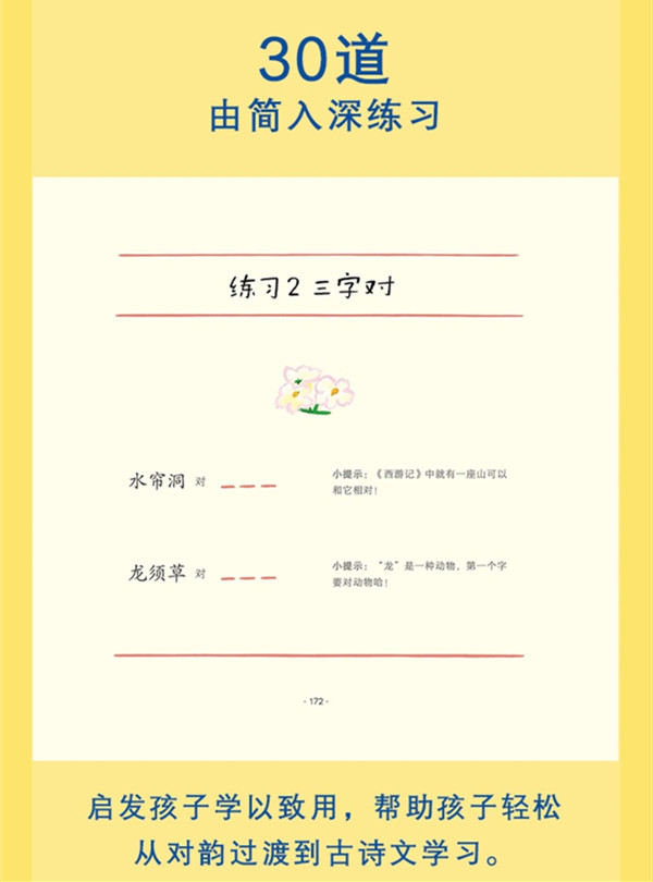 “声律启蒙”是古人学诗作文的综合性入门课,集中体现了汉语之美。“云对雨,雪对风”“山川异域,风月同天”“桃里春风一杯酒,江湖夜雨十年灯”……在私塾书声中滋养了一代代中国孩童,包括鲁迅、老舍、蔡元培、陈寅恪等文史大家。全国小学语文名师丁慈矿,二十年来带领孩子们读对韵、对对子,他从历代声律读物中精心甄选,按汉语拼音编韵,融入现代元素,将适合孩子的对韵汇编成书,于是有了这本《给现代孩子的声律启蒙》。这本贴近孩子、富于童趣的小书,激活传统经典,传承优雅汉语,只为帮助孩子成为爱生活、有情趣、懂审美的现代人。本书配有童声朗读音频,还特别邀请到风靡全国的《苔》诗谱曲演唱者梁俊,为全书录制诗性领唱音频,孩子会唱就会背,会背就会对。插画师阿毛毛连通孩子脑洞,创作极具现代感的中国风插图,营造出图画书般的愉悦阅读氛围。丁老师精心选编三十道练习,由简入深,方便孩子学以致用,感受到“对”的涵义,“韵”的乐趣。