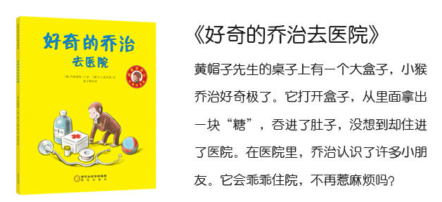 黄帽子先生的桌子上有一个大盒子,小猴乔治好奇极了。它打开盒子,从里面拿出一块“糖”,吞进了肚子,没想到却住进了医院。在医院里,乔治认识了许多小朋友。它会乖乖住院,不再惹麻烦吗?