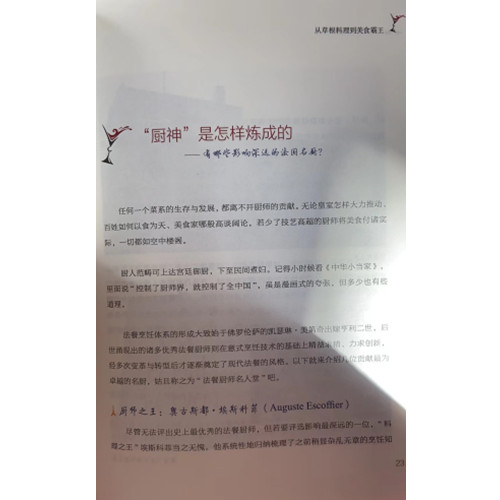 不端不装的吃货指南,有趣有爱的食材百科。2010年,法餐被列入世界非物质文化遗产名录。饮食文化成为人类遗产,这是历史上的第一次。第一章,从屌丝料理到美食霸王;第二章,打开法国人的餐桌;第三章,吃货的技术含量;第四章,牵着蜗牛去散步;第五章,法餐大厨的私房秘籍;第六章,贵餐厅装腔指南。