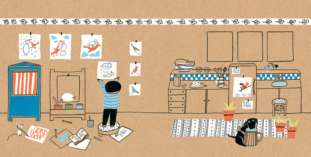这是一本能迅速吸引孩子眼球的创意图画书,一个个精致的模切小窗口,就像一面面会变魔术的镜子,让屋里的挂画变成了屋外的雪人,让屋外的小鸟变成了屋里的涂鸦……