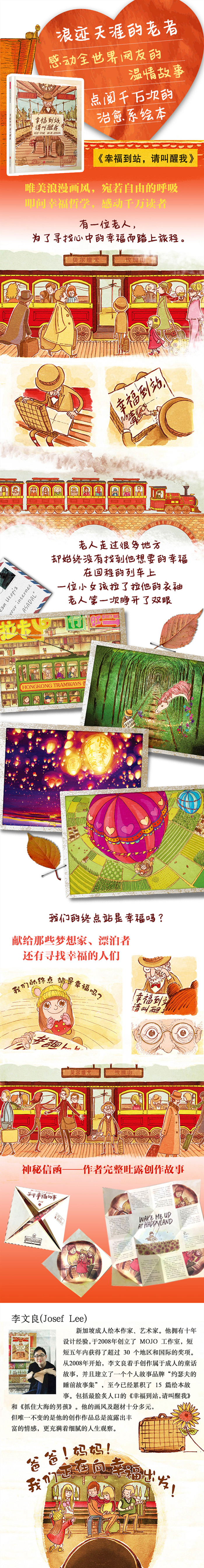 ♥新加坡新锐作家Josef治愈画风的无字绘本,温情叩问何谓“幸福”的人生终极问题。 ♥ 网络竞相传播,感动万千网友的成人绘本,国内微博、网络大V,未出版前已转发上万! ♥内含Josef专门为中文版绘制插图,只有中文版才有的“老北京胡同里”的幸福。