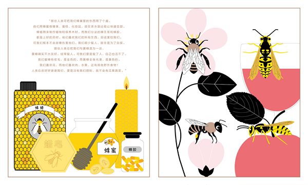 打开《蜜蜂和蜘蛛》这本图画书的那一刻,我们抓住了一次聆听动物心声的机会,那么合上书的瞬间,或许我们已经找到与动物亲近、与自然达成和解的一种方式——相互尊重,在和谐共处中加深对彼此的了解。这样的相处是美好的, 诚如本书中同样美好的两只小动物: 勤劳向善的蜜蜂、细心专注的蜘蛛。当然,这样的相处更是值得期待的。