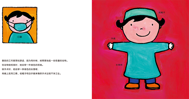 暖绘本 长大“干什么”第一辑(套装共十辑)编辑推荐:本套书介绍了每个职业所需要的工具及穿的制服,同时以小故事的形式讲解了每个职业每天需要做哪些事情,让孩子在故事中可以更加深入的体验该职业。书中画面简介大方,色彩艳丽,颜色搭配符合小朋友的视觉发展。其中该单本为本辑中 暖绘本 长大“干什么”兽医。
