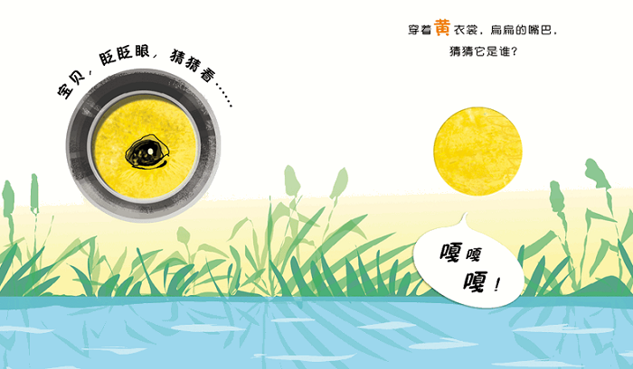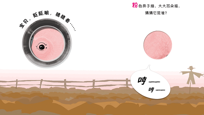 《洞洞后面猜猜看》:“穿着黄衣裳,扁扁的嘴巴,猜猜它是谁?”农场里,各种各样的动物,从洞洞里露出眼睛,猜猜它们都是谁,好奇地盯着宝宝看。跟着小小翻翻书认识农场里的动物,动动手、动动脑。