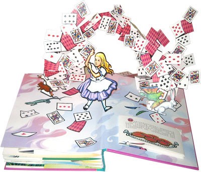 这位数学教师也正是在一次旅行中,给一位小女孩讲了这个自己随口编出来的童话。他当时也没有预料到,这将成为一部风靡世界的名著。他更不会预料到,在140多年后,“立体书大王”美国绘本作家罗伯特?萨布达付出了多大的努力终于创作出版了立体书《爱丽丝漫游奇境》,在全世界掀起持续性的抢购狂潮!