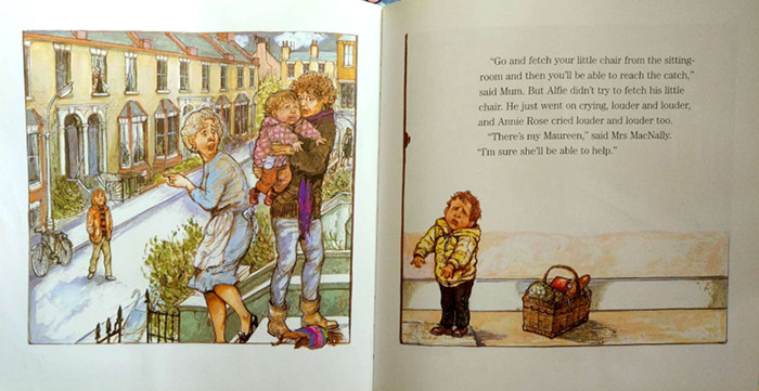 Arriving home after shopping with his mom and sister, Alfie rushes inside and slams the door. Bang! Alfie is stuck inside and his mom and Annie Rose are stuck outside without a key. Soon everyone in the street becomes involved in trying to rescue Alfie, but he has a plan of his own.