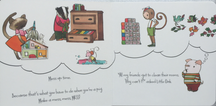 小猪非常爱干净。他就只想要打扫、打扫、打扫。可是爸爸妈妈才不管!他们说想要当一只好猪,就要学会好好的制造脏乱。