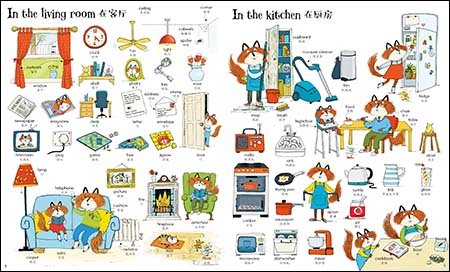 这是一本专为儿童编写的双语词汇启蒙书。别具一格的怀旧画风,描绘了25个主题,涵盖了大约1000个贴近儿童生活的常用词。每一页都藏有两只小老鼠,孩子可以一遍翻阅一遍寻找,颇有趣味。文末附有单词表,方便查找单词。在这本大开本的硬皮书中,有太多的东西值得发现和讨论,这正是一个把孩子聚在一起认真阅读的好机会。