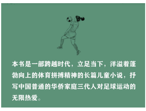 本书是一部跨越时代,立足当下,洋溢着蓬勃向上的体育拼搏精神的长篇儿童小说,抒写中国普通的华侨家庭三代人对足球运动的无限热爱。上世纪五六十年代,大批华人华侨积极响应党和国家号召,回归祖国的怀抱。小华侨成文跟随父母历经多年,辗转多地,终于回到云南宾川的华侨农场。农场里唯一的娱乐方式是踢足球,成武在踢足球的时光中渐渐长大。改革开放后,很多侨民出国经商,人们忙于发展生产,球队解散了。30年后,成武已经成了外公,但仍心怀足球梦。外孙女妮可参加了校女子足球队,在比赛中球员们学会了团结协作,努力拼搏。原来的老球员纷纷回来给他们加油。球队要参加省级联赛,向即将到来的国庆献礼妮可带着成武的期望走向了赛场。全书以青少年的对足球的热爱入手,将个人的命运与国家的发展结合在一起,既能够表现出个人对足球这项体育运动的热爱,展现体育的魅力,又展现出时代大背景对于个人际遇的深刻影响,不动声色地体现了唯有祖国强大,人民才能幸福的主旨。