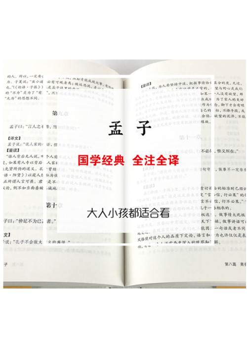 孟子是儒家学派主要的代表人物之一,他继承和发展了孔子的学说,被后人尊封为“亚圣”,与孔子合称“孔孟”。所著《孟子》七篇十四卷,为《四书》之一,内容丰富,涉及政治、哲学、伦理、经济、教育、文艺等多个方面,对后世影响深远。本次出版以中华书局《诸子集成》所收焦循的《孟子正义》为底本,约请专家充分借鉴吸收了前人和今人的新研究成果,注释疑难词句及典故名物;逐篇翻译;每章都作题解,概述该章主旨。在校对文字、注释及作品辨伪、评析方面尽可能汲取先贤时彦的新研究成果。本书版本注释简明,翻译晓畅,装帧精致,是热爱中国传统文化者的案头必备书。