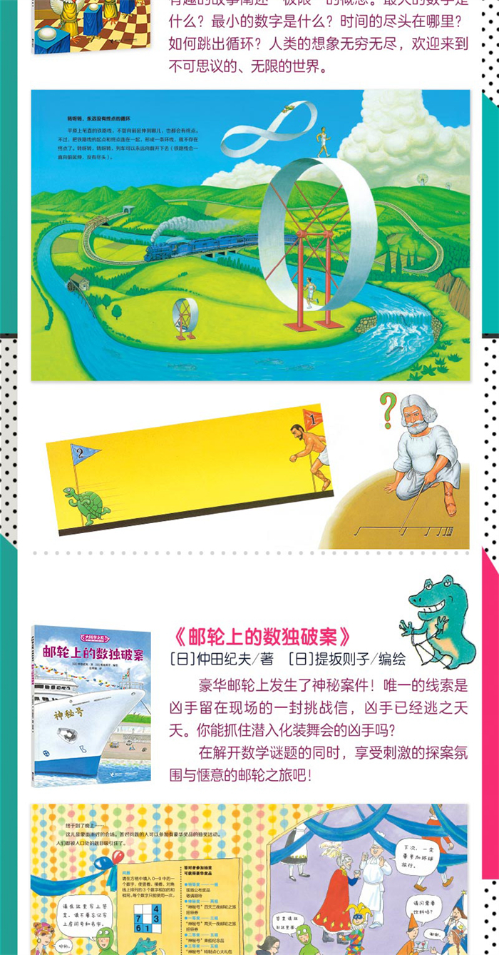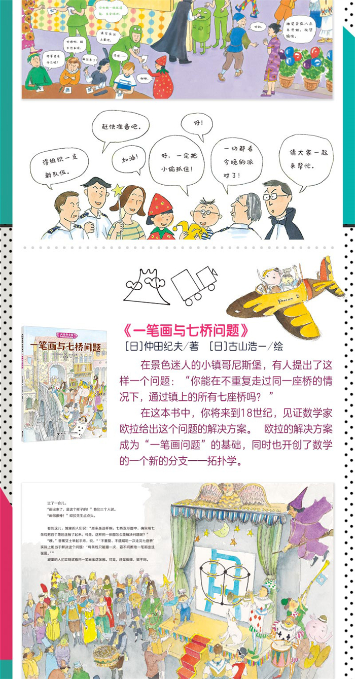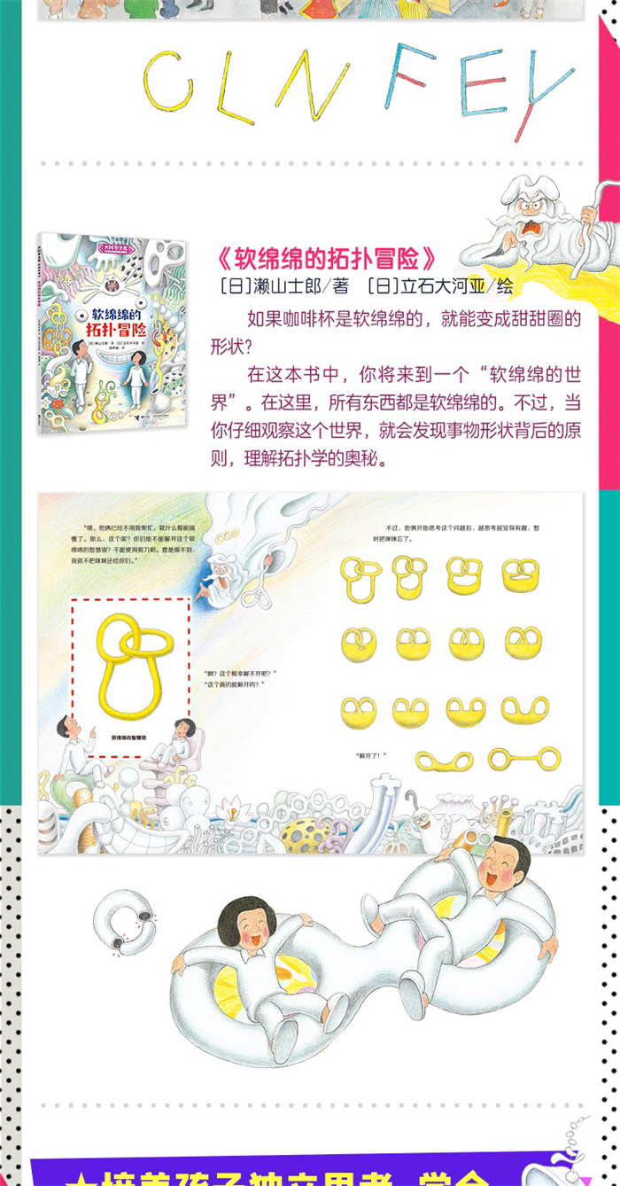 适合小学生看的科学图画书,以科学之心洞见世界之美。 如果咖啡杯是软绵绵的,就能变成甜甜圈的形状?如何能不重复、不遗漏地一次走完哥尼斯堡的七座桥?做做思维体操,能更加灵活地分析和处理生活中遇到的问题,以不一样的角度看待世界。