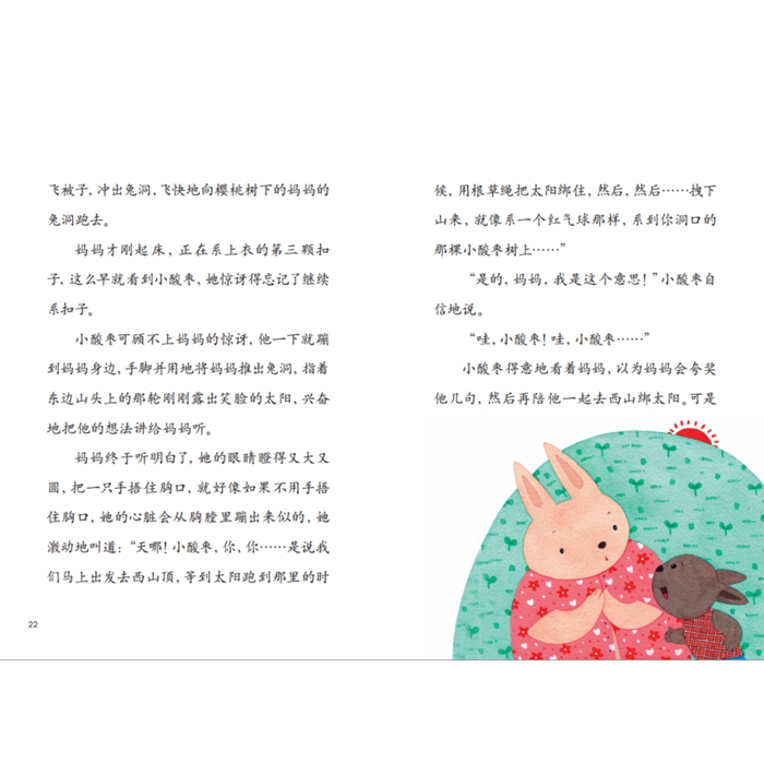 《小酸枣的大梦想》 小酸枣是一只兔子,身材矮小的它平日里遭受到不少轻视与欺辱,但它不愿甘心做一只被人欺负的小兔子,小小的它每天都会早起锻炼身体,妈妈也去求山神为它寻找让身材变魁梧的良方。有一天,勤奋又有毅力的小酸枣在锻炼身体时发现了狼群,*终聪明的小酸枣凭借着坚强的意志战胜了狼群、挽救了整个家族。