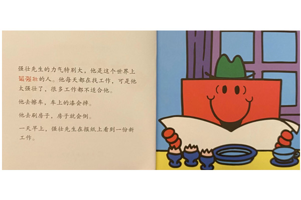强壮先生太强壮了,很多工作都被他搞砸了。他差点丢掉 在动物园的新工作,因为从星期一到星期五,他办砸了所有 的事情。但是,当他把小象抱进浴缸洗澡时,动物园园长知道这是*适合强壮先生的工作。