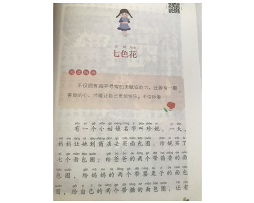 《七色花》是一篇童话故事,作者为苏联作家卡达耶夫,该故事并于1948年拍成同名动画片。故事是围绕小姑娘珍妮和她的七色花展开的,珍妮用七色花掩盖了自己的错误、达成了自己因愤怒、嫉妒等自己的负面情绪产生的种种愿望,但珍妮并未因此得到真正的快乐,最后一片花瓣,她用来帮助他人,并从中找到了真正的快乐。这个故事告诉我们,贪心会让生活变得混乱,而帮助他人却可以获得真正的快乐。书中还收集了其他苏联著名作品。
