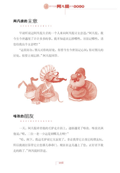 《讲不完的阿凡提故事》系列收入了流传在我国新疆乃至世界各国的一千余篇经典阿凡提故事。这些跳跃不息的故事浪花,长久地折射熠目的光芒。故事蕴含的幽默和智慧,成为人们获取欢乐和思想的永不干涸的源泉,以此为参照,人们透视自己,诠释自己,从中得到启示。本书翻译语言精准到位,既有所发挥又不失故事原貌,全书富含深刻久远的故事内核和独具匠心的创意,蕴含传统的文化精髓,能有效激发少年儿童对传统文化的热爱与传承,并以时尚新颖的装帧形式和富于异域风情的插图,呈给孩子持久的视觉美感!