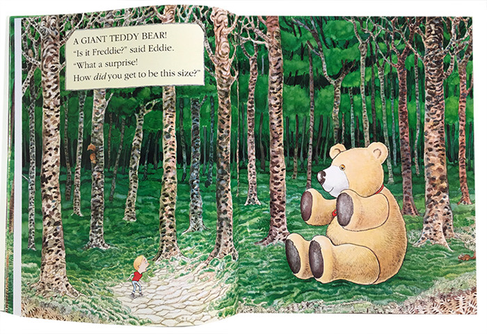 Little Eddy loses his toy bear and has to go looking for him in the dark, horrible woods - where he's in for a gigantic surprise.
