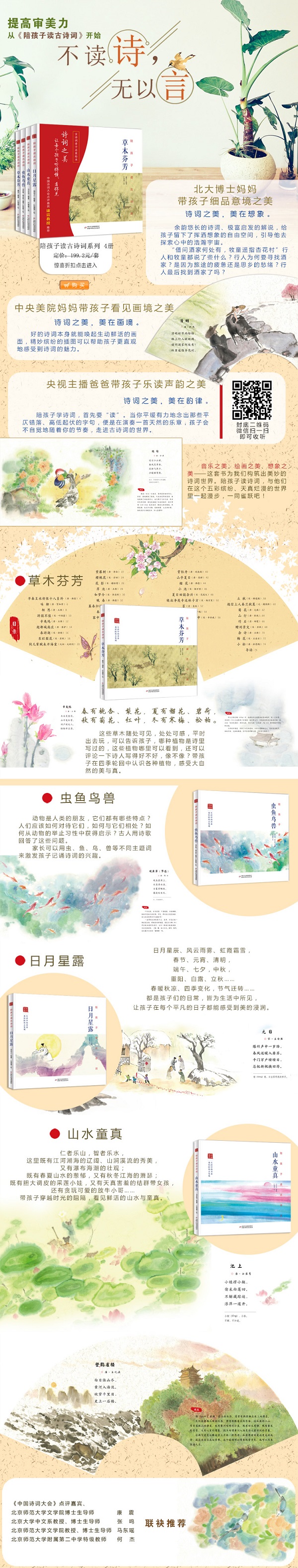 三位北京大学古代文学博士妈妈廉萍、马东瑶、周剑之解诗,严谨不失平易,灵动隽永,带孩子读懂诗中之意、诗外之音,指导家长如何陪孩子读诗;