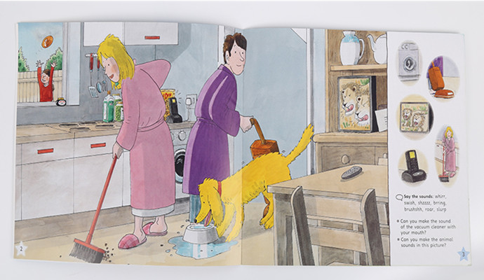 该套读物属于正式学习自然拼读规则之前的预备教材,以生活中常见的声音为主,学习其相关的拟声词和词汇表达,帮助孩子建立音素意识。