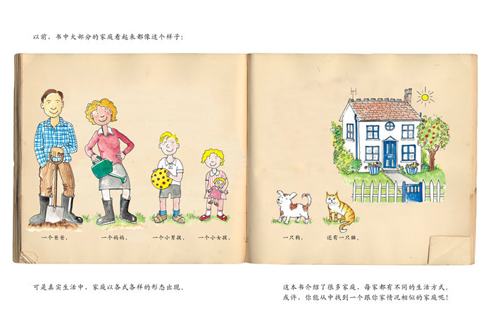 作者和画家用敏锐的观察力和温暖明快的画笔探索了我们自身及周边家庭生活的各个方面, 有社会共存的家庭形式, 也有生活要面对的各种情形。她们期望通过本书给孩子传达更多的家庭信息,帮助孩子了解文化和价值观的差异,让孩子们知道,原来世界是如此的不同!