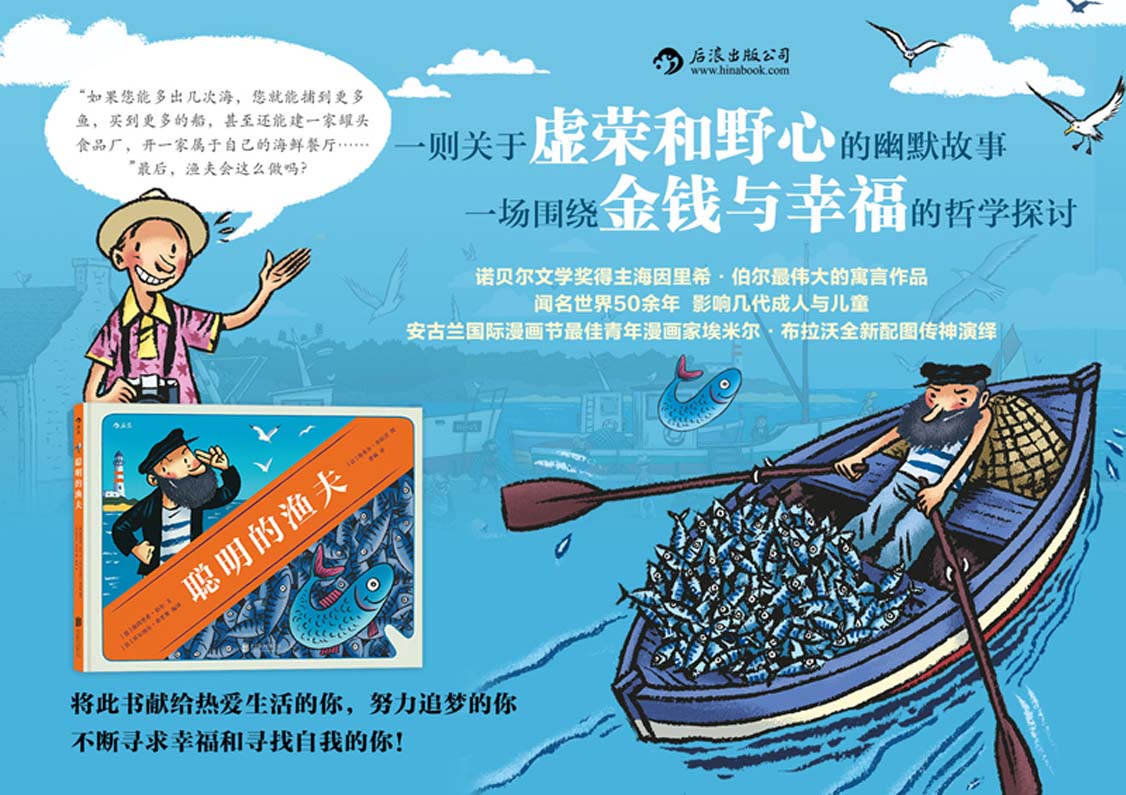 推荐一:《聪明的渔夫》原著是德国诺贝尔文学奖得主海因里希伯尔*伟大的寓言作品,在全世界流传了50余年,影响了几代成人与儿童。半个世纪以来, 这则故事不仅被改编成各种小说和动画作品,还被许多学校列入语文教材和必读书目。它渐渐从*初的成人世界走进儿童的视野,成为了一种具有启迪意义的生活哲学。