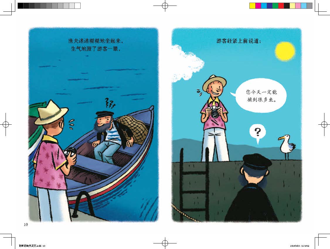 推荐三:《聪明的渔夫》是**部关于与这则寓言的漫画绘本,由安古兰国际漫画节**青年漫画家埃米尔·布拉沃配图演绎。作品以全画幅和分框连环画的形式交替叙述,既凸显了内容的韵致节奏,又增添了新的幽默和趣味。值得一提的是,绘者在故事*后留出的两个空白页和隐藏在护封背面的全景式插图也是本书的点睛之笔。