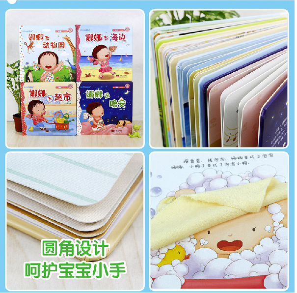 《娜娜快乐成长系列》《触摸认知立体绘本》是一套偏重触摸的认知绘本,书中设计了各种独特的仿真材质,旨在让孩子在触摸过程中感知世界,认识世界。《娜娜说晚安》描述了娜娜在睡觉前做的一系列事情:收拾玩具、洗澡、刷牙,和玩具说晚安,和小鸭子说晚安,和小牙刷说晚安,和月亮说晚安……在娜娜重复说晚安的过程中,营造出了温馨的睡前气氛。