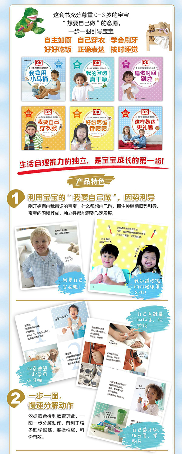 《我要自己穿衣服》是“DK0-3岁关键期独立性培养系列”中的其中一册。本书充分尊重0-3岁孩子“想要自己做”的意愿,针对宝宝自主如厕问题,一步一图,让孩子跟学跟练,学会自主如厕,兼具科学性、趣味性、实操性,使孩子迈出独立 步,实现成长的飞跃!