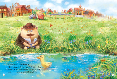 猫先生跑到池塘那儿,放慢了脚步。他看见老鼠扛着自己的领带,哎哟,不好,老鼠准备把领带往池塘里丢呢。猫先生说:“请等一等,老鼠先生,你需要我的帮助吗?”老鼠喊了一声“妈呀”。老鼠说:“猫先生,绅士先生,我是不该偷你的领带。可是,我没有办法。你看,我的小伙伴掉进池塘里了,我想用你的领带把他救上来。”