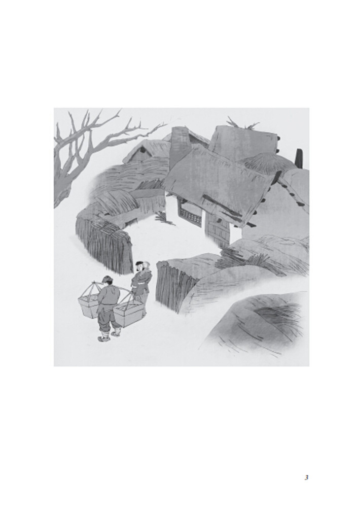 年老的人,一进屋用扫帚扫着胡子上的冰溜,一面说:“今天好冷啊!地冻裂了。”