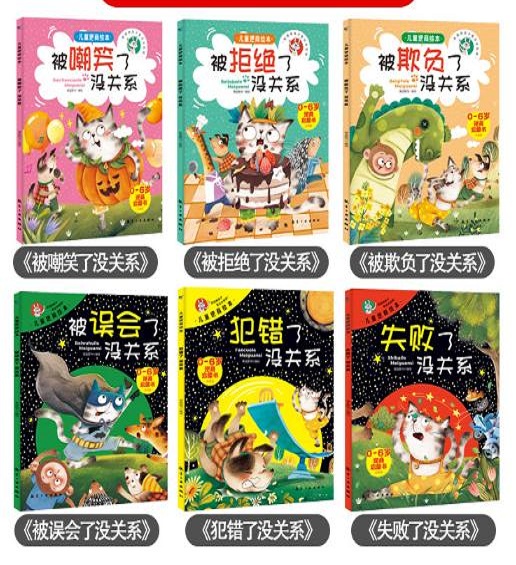 《儿童逆商绘本(全6册)》分别为《失败了,没关系》《被拒绝了,没关系》《犯错了,没关系》《被嘲笑了,没关系》《被误会了,没关系》《被欺负了,没关系》,以可爱的动物为主角,将孩子们在现实生活中遇到的问题、困难变成奇妙的故事,通过故事告诉孩子们在外面受欺负了怎么办、被嘲笑了怎么办、失败了怎么办……用“润物细无声”的方式引导孩子们战胜困难、走出逆境。