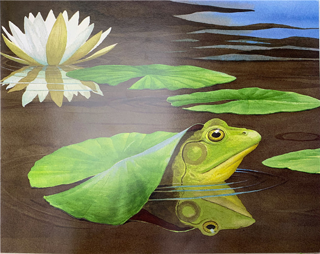 在文字部分,凯瑟琳希尔老师用最简洁的语言告诉孩子们不同类群动物的基本特征,而她融入文中的自然情感,让这些简洁的文字读起来像诗一样优美。约翰·希尔的插图细腻写实,动物栩栩如生,真真切切地让人感受到世间万物的美和灵性。小读者仿佛能从中听见鸟儿鸣叫的声音、青蛙捕食苍蝇时吐收舌头的声音、海浪拍打沙滩的声音…书币细腻的画面、真实的场景,能给予孩子观察和发现的快乐,能提供给孩主审美的愉悦;提问部分为家长和孩子拓展了进一步探索的空间,并再次将他们的注意力吸引到图画上,鼓励他们通过更细致的观察和思考得出自己的答案。