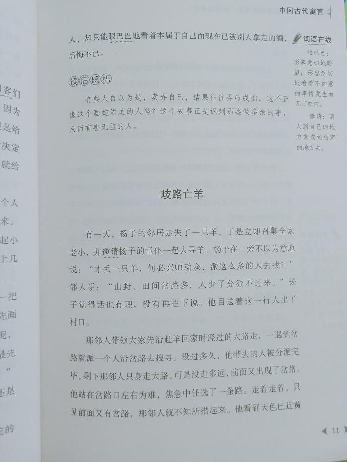 我国古代寓言故事源远流长,博大精深。它们大都来源于生活,是人们集体智慧的结晶。阅读它们有利于我们获取生活的经验,掌握学习的技能。本书所选我国古代寓言故事大体涵盖了上至春秋战国下至唐宋元明清时期的诸多故事,它们以生动形象的比喻教人生活的哲理和智慧;讽刺现实及人性的弱点,劝善惩恶,给人以警醒;讲述学习态度和方法,给人以借鉴意义。