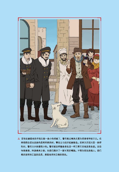 警官回过头来,对着警察吩咐道:“叶尔德林,赶紧调查清楚,看是谁家的狗?不许拖延!也许这是条疯狗,非打死不可!”警官奥丘梅洛夫手里拿个小包,神采奕奕地穿过市集。身后的警察端着一个装满东西的粗箩,紧随其后。广场上连个人影都没有,那些敞开大门的杂货铺子像一张张饥饿的嘴巴,无精打采地面对着世界。