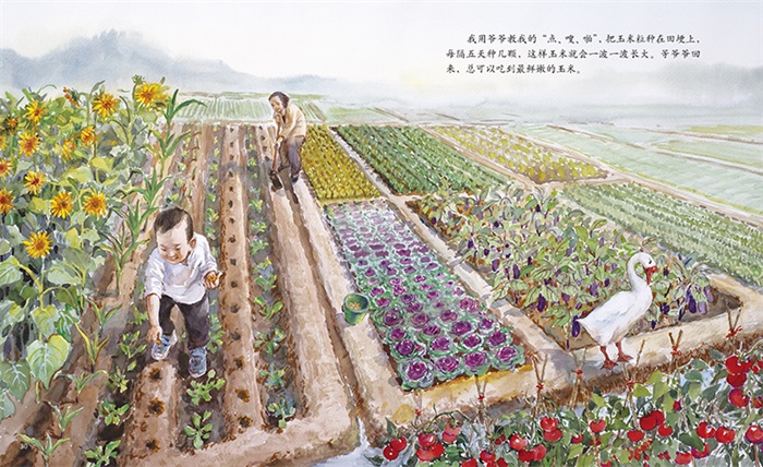 这是一本亲近孩子视角的、富有温情和童趣的图画书。故事讲述了祖孙二人一起播种耕作的田园生活,“我”和爷爷、乡村动植物们相互陪伴成长的故事。故事刻画了儿童参与劳动的真实体验,同时也反映了万物生长自有其时、生命盛衰更替的规律,以及寓教于乐、寓教于行的朴素教育传统。故事简单易懂,语言平实温暖,画面真实感人。