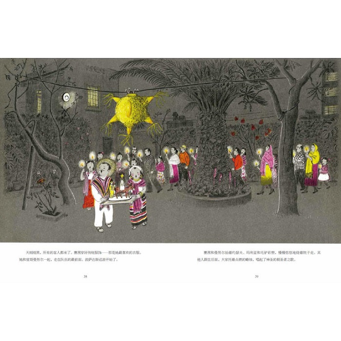 这个故事可爱极了,每个孩子会被深深吸引。 ——《美国大西洋月刊》 故事甜美,打动人心,是每个家庭必备的圣诞节读物! 书中的画面让我想起了旧时的儿童读物插图,画面中的主要角色是彩色的,而周围的风景则是灰色的,人物也真正脱颖而出。 《还有九天过圣诞》获得凯迪克金奖是实至名归的。这种样的故事永远不会过时。 这部绘本犹如书中之瑰宝,精美的文字与插图为孩子带来阅读的惊喜,成年人也会深深为之着迷。同时为人们打开了一扇了解墨西哥文化的窗口,是一个值得分享的好故事。