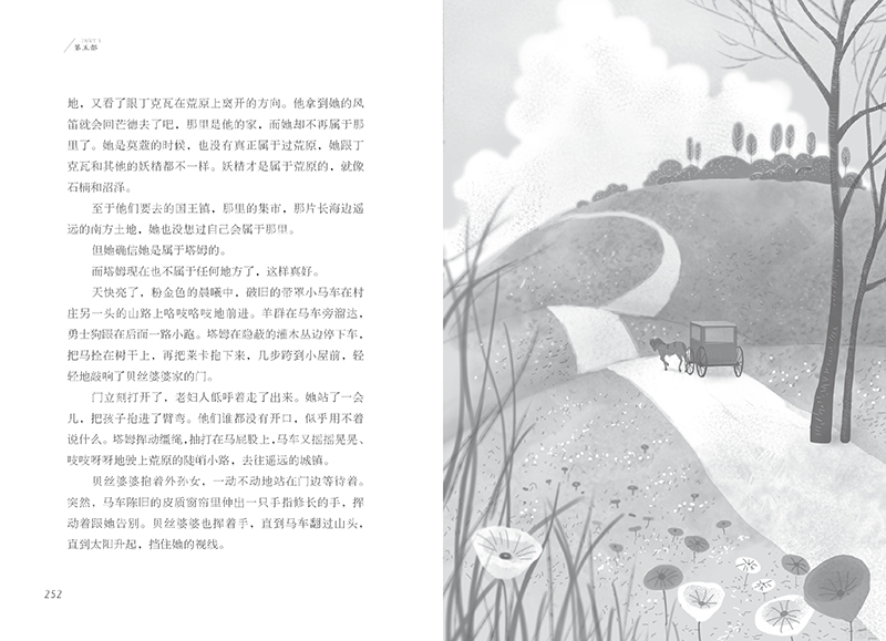 她停下脚步,警惕地看向铁匠铺和自己的家。街上冷清得有些古怪,井边没有人,门廊边也没人在闲聊,一个孩子都看不到。老法耶切的狗在老人常坐的长椅边伸着懒腰,打着哈欠,摇摇晃晃地跑开了。萨思琪心想,大概是因为那场雨,大家都躲进屋里去了。过去,为了不被人发现,她总是偷偷溜进家门,但这一次没必要再沿着以前的路走了,她现在满脑子都是接下来会发生的事。