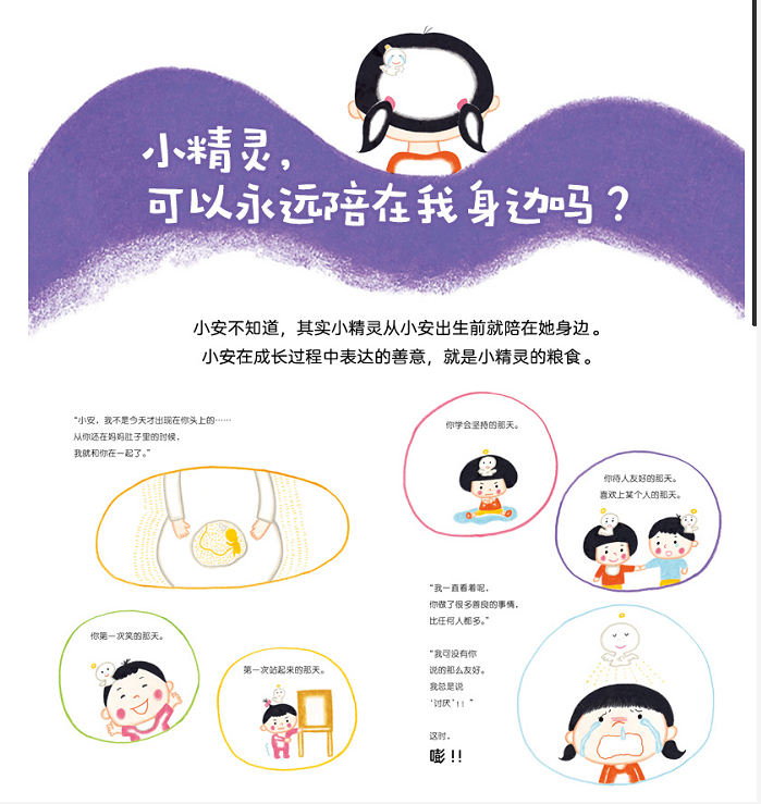 小安总说“讨厌,讨厌”。一天,妈妈告诉她:“你知道吗,你的头上有小精灵。”小安本来一点儿也不信,没想到,“嘭”的一声,小精灵真的出现了!小精灵说,每个善良的人都会被守护,而自己是专属于小安一个人的小精灵,一直在小安身边,看着她做了很多美好的事情。就在小安渐渐相信小精灵的存在时,小精灵却消失了!为了再次相见,小安许下美好的心愿……