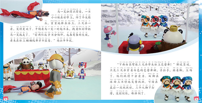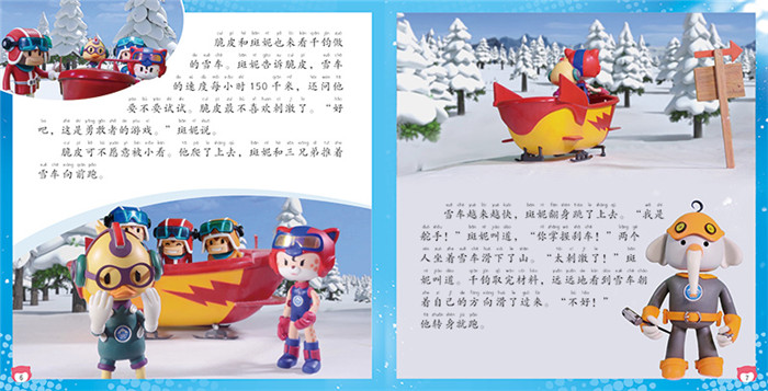 《冰雪冬奥村超越自我拼音认读故事书》系列共6册,改编自北京卡酷传媒有限公司设计制作的动画片《冰雪冬奥村》。书中由金钱豹、藏羚羊、大熊猫等可爱动物变身而成的萌趣角色,共同演绎冰雪运动的魅力,讲述与冬奥有关的故事,向少年儿童传递办奥理念、弘扬奥运精神。 《冰舞大会》一册包含两个故事——《同舟共济》和《冰舞大会》。千钧则造出了冬奥村有史以来的辆雪车,可还没等给雪车安装方向舵和刹车装置,斑妮和脆皮就兴冲冲地驾着雪车冲下了山坡,失控的雪车在村子里“飞驰”,它还能停下来吗?斑妮不会跳舞也不敢跳舞,却阴差阳错地参加了“冰舞大会”,她能勇敢地上场吗?故事之后,还有专门的冬奥知识页,介绍“雪车”和“花样滑冰”。