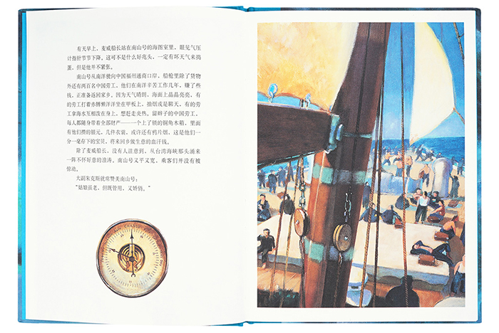 艘运载着货物和两百名中国劳工的轮船南山号行驶在返回福州通商口岸的途中,船长是富有经验的麦威。平静的海面突然刮起台风,狂风暴雨顿时让整艘船陷入无比危险的境地之中,货物被吹得东倒西歪,工人们挤作一团,哄抢着四处散落的银元。末了,凭借着麦威船长沉着、冷静的指挥和全体船员誓死捍卫轮船的拼搏精神,他们度过了难关。