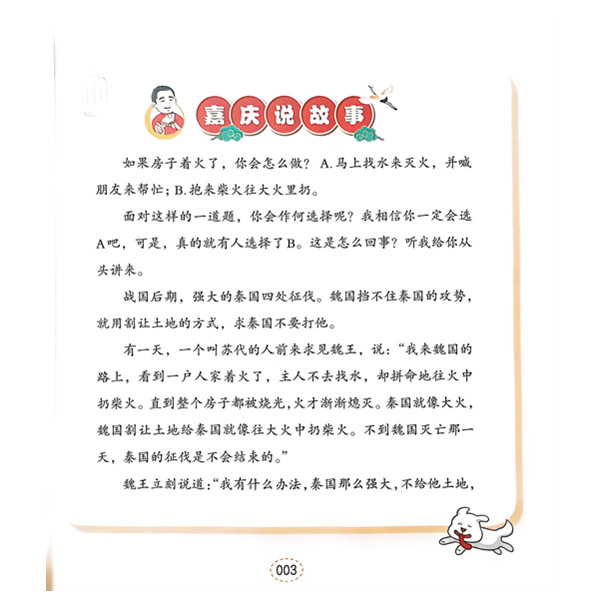 1.嘉庆叔叔为5-12岁孩子精心打造的一套好看又好听的爆笑儿童相声漫画书 2.喜马拉雅平台播放量超1.4亿的“听相声 学成语”栏目内容精选版 3.德云社相声演员阎鹤祥、张鹤伦,“婷婷唱古文”创始人婷婷姐姐等联合推荐 4.传统相声与国学相结合,让孩子在开怀大笑中学成语、读故事、练口才、演相声 5.书中配有相声原声音频,还原相声舞台表演情境,手机扫码即可收听 6.书中嘉庆叔叔、小九、王小毛等天真可爱的漫画形象,以及生动活泼的漫画场景,极大的丰富了小读者的阅读体验和想象空间 本套书精选喜马拉雅儿童频道头部节目“听相声学成语”中上百个适合少儿阶段学习使用的常用成语,涵盖勤奋好学、诚实守信等有助于少儿成长的故事题材,通过爆笑的相声、相声人物形象的漫画、嘉庆说故事等形式,帮助孩子理解、学习并运用成语。书中还有相声小知识、表达小技巧、儿童相声剧本等内容板块,帮助孩...