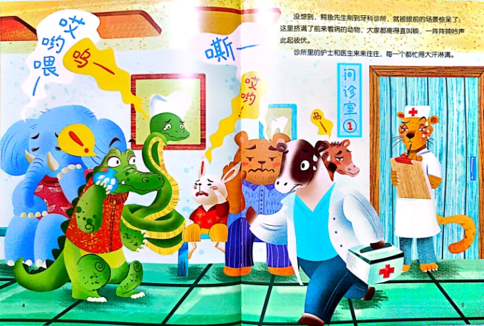 鲨鱼的牙齿一般是三角形的,牙根非常短,牙冠却比较长。因为鲨鱼需要经常撕咬猎物,所以它们的牙齿磨损得特别快,一条鲨鱼在一生中需要更换掉大约两万颗牙齿! 本书以图文并茂的形式讲述了鳄鱼看牙医的故事。