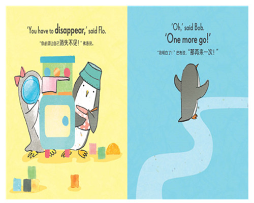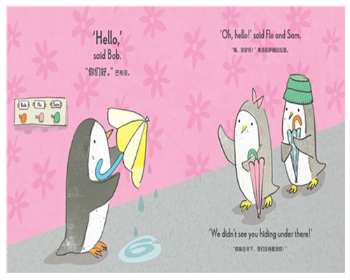 巴布和弗洛系列是获得多项大奖的著绘者丽贝卡的作品。本系列包含两个绘本,每本36页,每页的英语只有一句。书中的主人公是刚刚上幼儿园的小企鹅,在他们身边发生了很多有趣的故事。本书色彩鲜艳,图画可爱,适合2-5岁的孩子进行英语启蒙和兴趣培养。是英语教养和入园预告不可多得的启蒙套系。《丢失的小桶》分册,讲述了巴布和弗洛在幼儿园初次相遇的故事。巴布很喜欢弗洛的小桶,并在弗洛画画的时候带走了它,弗洛找了很久,终于看到了自己的小桶和卡在滑梯上巴布。弗洛用小桶接了水,向着滑梯冲去,不仅帮助了巴布,还发明了一种新的游戏。在这个故事中,孩子为了交朋友而学习“分享”的概念,“一起玩”比“小桶是谁的”来得更重要,不是吗? 在《躲猫猫》分册中,又加入了一只名叫萨姆的小企鹅。小伙伴们决定玩躲猫猫的游戏,巴布*先躲起来。弗洛和萨姆很快就找到用手挡住自己眼睛的巴布,他们建议巴布躲到什么东西后面,这样就不会马上被找到了。然而巴布躲到了一只平底锅后面,身体的大半部分都露在外面。又一次被找到之后,巴布掌握了躲猫猫的精髓,他成功地让自己消失不见,弗洛和萨姆找了很久都没有找到他。自己找变通的方式,从错误中学习,这就是孩子的天赋。