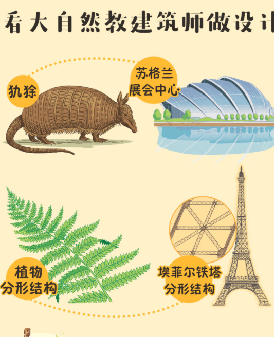 这是一本让孩子成为建筑师的灵感启发书。书中讲述了30多种自然生物对世界建筑设计的影响,比如建筑设计师通过模仿一种以稳定河岸而闻名的草的长根来建造防震桥。书中用情景式描写,让读者仿佛身临大自然,亲眼见到了自然对建筑设计的影响,还用手绘插图辅助文字说明自然生物的奥秘与建筑设计的关系,是科学与艺术的结合。书中的侧边栏小板块还告诉读者更多关于世界知名建筑师如何模仿自然生物设计建筑的故事。书的*后还有互动板块,引导小读者自己动手,用自然给他们的灵感设计建筑。 本书荣获 加拿大儿童图书中心“*儿童和青少年图书奖” 加利福尼亚读书协会“尤里卡荣誉奖” 本书入围 加拿大科学作家和传播者“青年图书奖” 加拿大儿童文学圆桌会议“信息图书奖” 加拿大儿童选择奖“红杉奖”