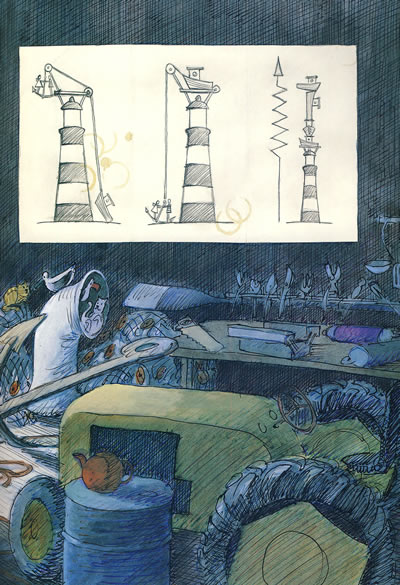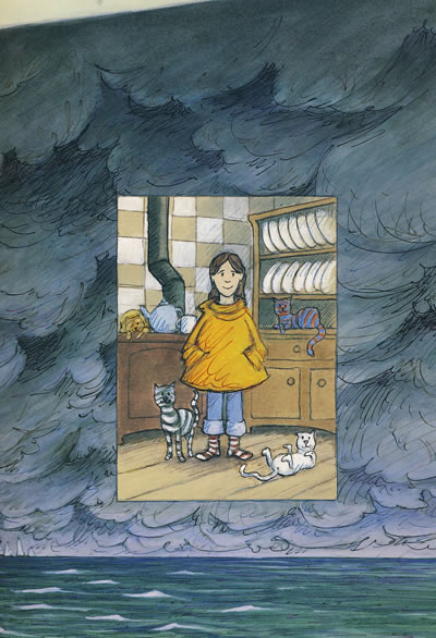 在大海的深处,在远离所有海岸的地方……在被险峻的礁石包围的冰冷的海水中央,有一座小岛。一天又一天,一天又一天,那里不停地下着雨。小岛的上空笼罩着厚厚的乌云,早晨和晚上云层从未裂开,甚至在深夜里云层也从未裂开。只有灯塔散发出光芒。凯蒂——灯塔的守护者,她坚信,在乌云之卜肯定还有另外一束光芒。于是,她的脑海里出现一个独特的想法,并且她立刻行动起来,努力去实现她的想法……