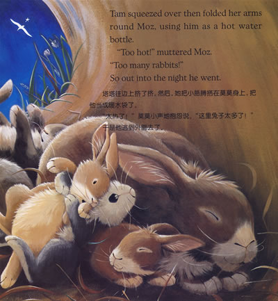 夜晚的地洞里,小兔子莫莫快被其他的兔子给挤扁了。他皱皱巴巴地从窝里出来,请他的朋友信天翁带他去北方之星的冰雪国去。于是他们飞走了,可是,当莫莫迷失在冰雪国的时候,他发现自己又冷又孤单,他已经离家好远好远啦。