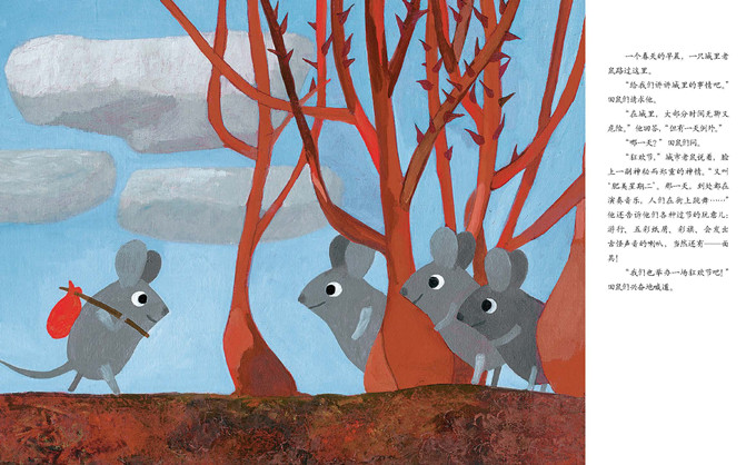 森林里,一群田鼠过着安宁、平静的生活。有一天,一只城市老鼠路过这里,和他们说起了城里的狂欢节。 田鼠们心想,要是我们也办一场自己的狂欢节,该多好啊! 他们在灌木丛上挂上丝带,戴上假发和帽子,举办盛装游行和化妆舞会,开心地唱歌、跳舞,直到深夜。 接着,他们戴上面具,装扮成凶猛的动物,却逐渐忘记了自己原本的样子……