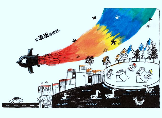 简介一只顽皮的小猪被家长关进房间自我反省,他却画下一架飞船,开启了一趟想象中的太空之旅。他想象自己带着饮料、比萨和小鸟朋友占领外星球,然后胜利而归。五分钟后,在家长的允许下,小猪又满血复活地投入游戏中。本书中的父母用“冷处理”或“计时隔离”的方式,让孩子在独处中学会改变、约束自己的行为。同时,这段五分钟的“计时隔离”淋漓尽致地呈现出孩子的特质——拥有无限的奇思妙想和创造性的思维;它让大人更好地了解孩子,同时反思我们的教育。