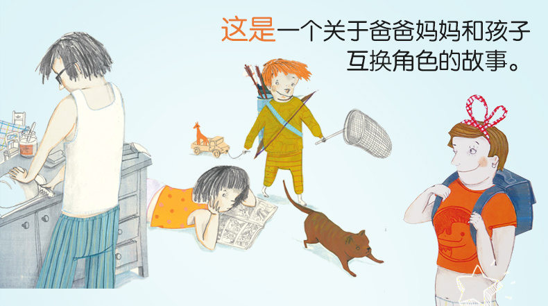 生动有趣的亲子故事:想快快长大的孩子碰上了对童年生活向往的大人,互换角色的他们,决定体验一日对方的生活。